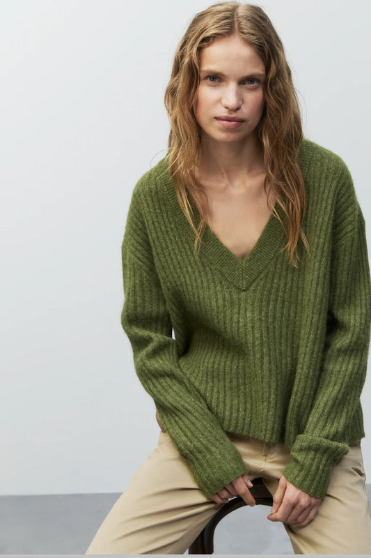 CLOSED WOL EN ALPACA V-HALS TRUI PISTACHIO