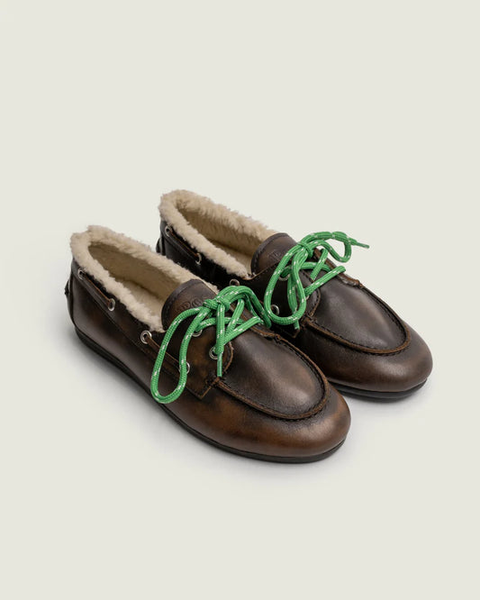 POSA BOAT LOAFER LEATHER FUR COFFEE