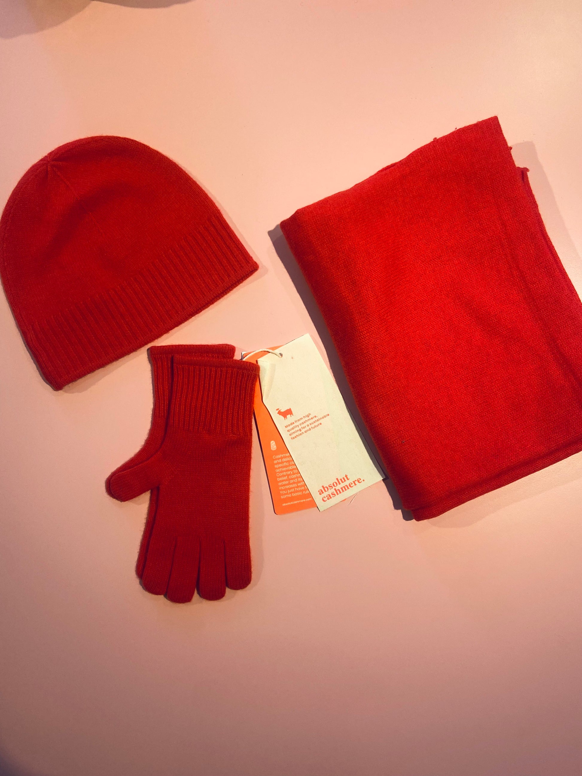 ABSOLUT CASHMERE SET MUTS+SJAAL+HANDSCHOENEN POPPY RED
