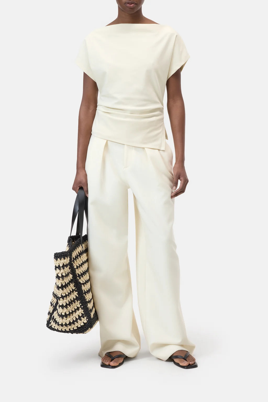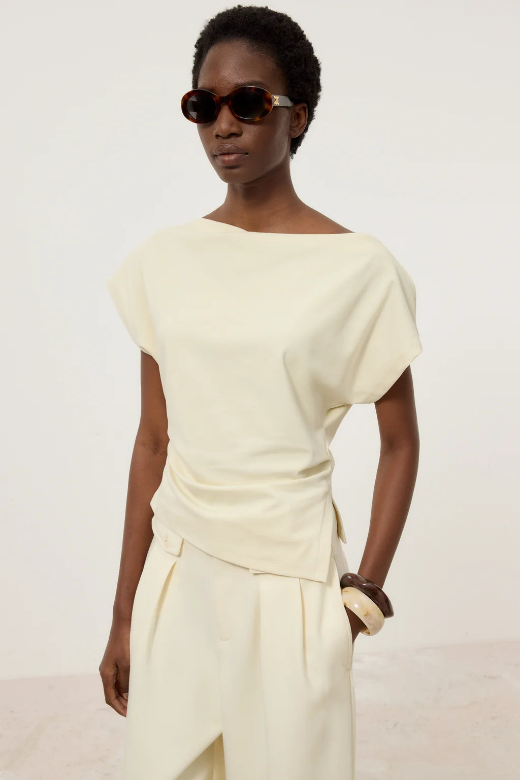 Deze top van katoen en elastaan maakt indruk met zijn aangenaam zachte kwaliteit en moderne pasvorm. De slanke snit, normale lengte en off-the-shoulder design creëren een vrouwelijk silhouet. Kenmerkende details zijn de asymmetrische zijsplitten en de ingezette mouwen.