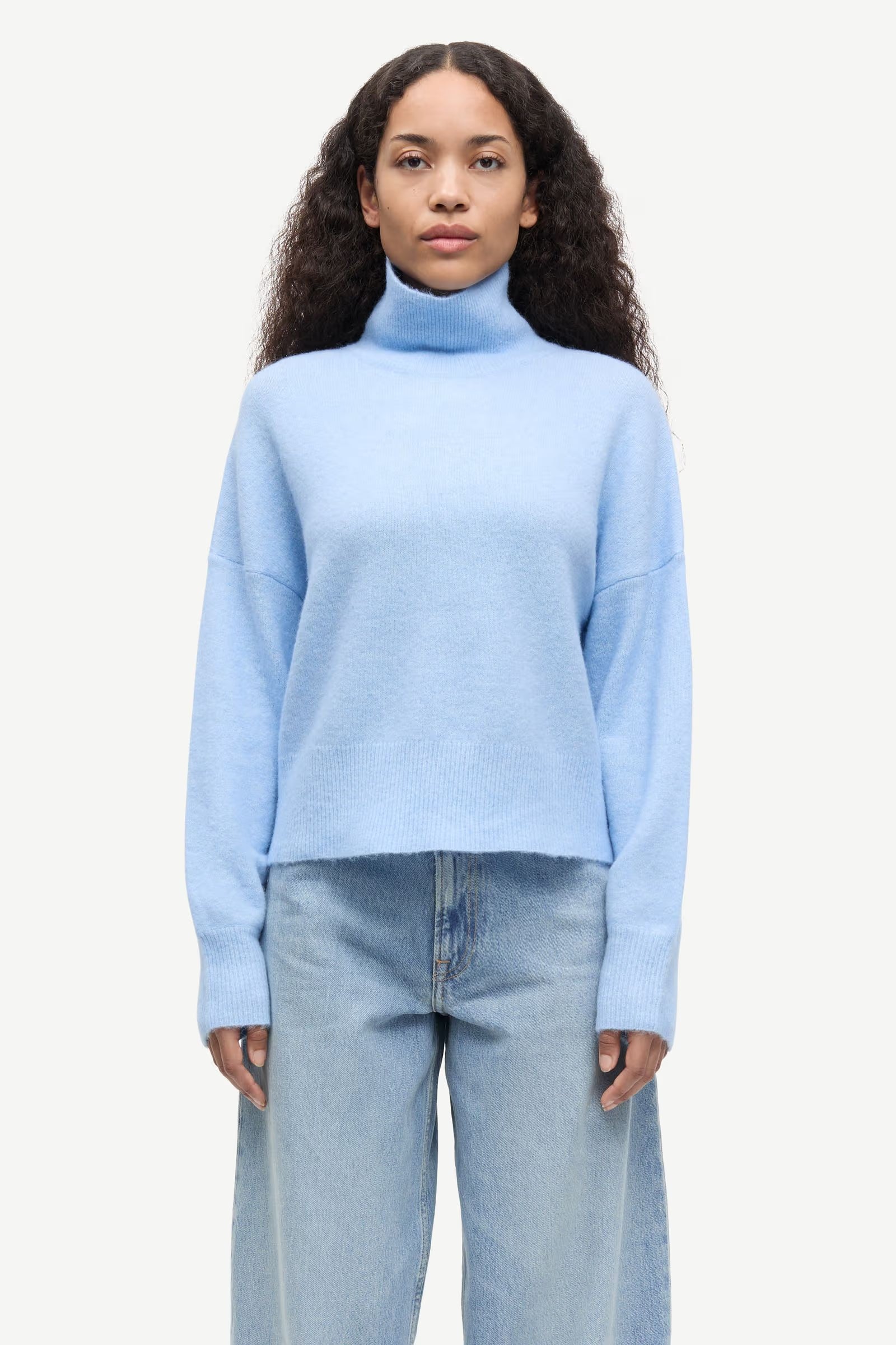 Coltrui met een normale pasvorm en verlaagde schouders. Ribgebreide kraag, manchetten en zoom. Volledig afgewerkte naden. Het hoofdmateriaal is een mix van wol, alpacawol en gerecycled polyester.