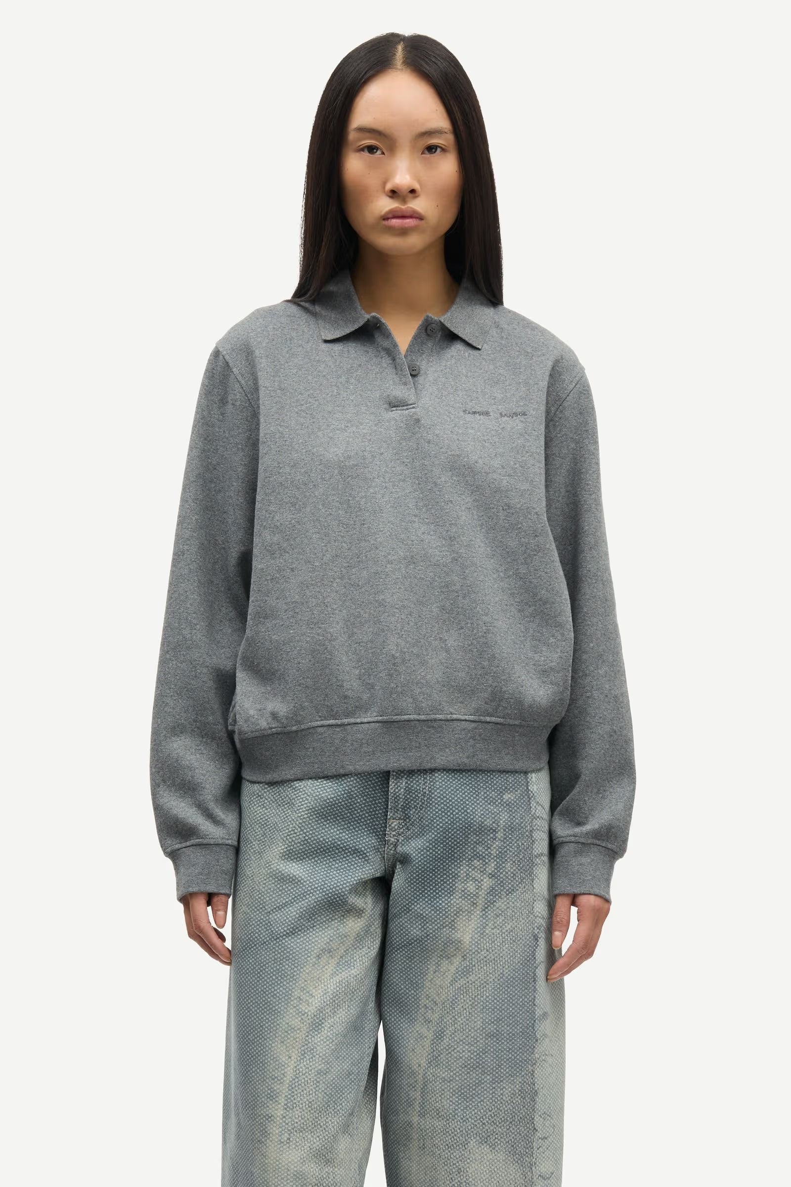 Poloshirt met lange mouwen, een losse pasvorm en verlaagde schouders. Korte knoopsluiting aan de voorkant. Ribgebreide kraag, manchetten en zoom. Geborduurd Samsøe Samsøe-merk op de borst. Hoofdmateriaal: 100% biologisch katoen.