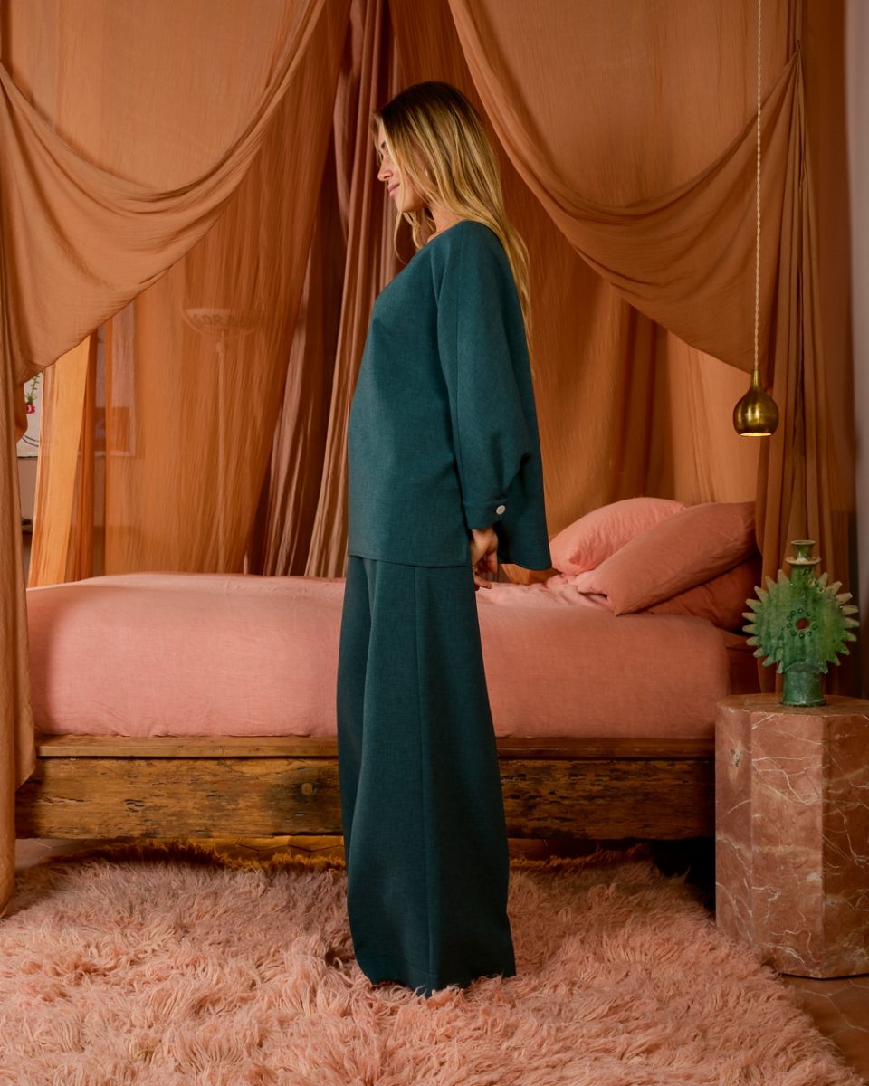 Losvallende top van SMH in de kleur dark green. Leuk in combinatie met de bijpassende broek.